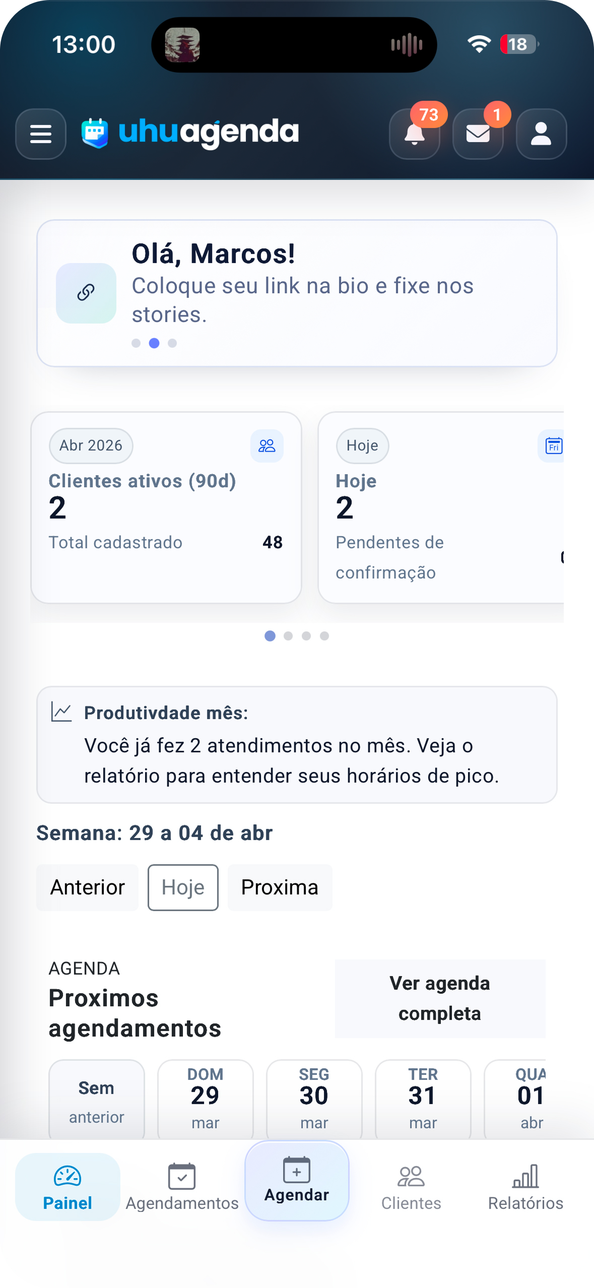 Teste a UhuAgenda na sua rotina e veja seu cliente marcar sozinho, com menos manual e mais previsibilidade no dia.